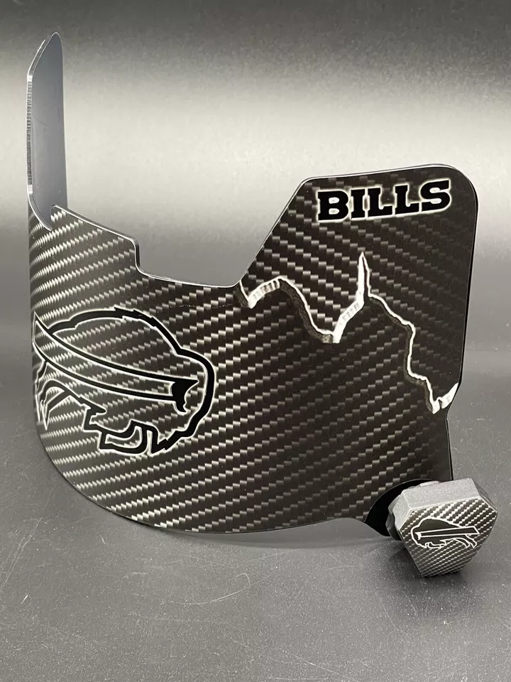 For all those with that Dark Side, here is a Buffalo Bills Black gloss cut with matte carbon fiber, a really one of a kind blackout look with that all important die cut gloss black popping through