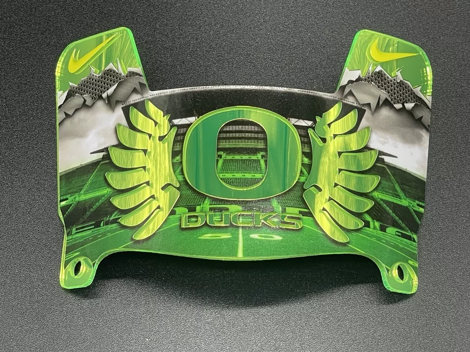 A perfect visor to show your support for those Oregon Ducks!! Choose your color chrome for the perfect match and bring that PC to the next level! All visors are protected from moisture and light damage and will last for generations!! Clips are included!!